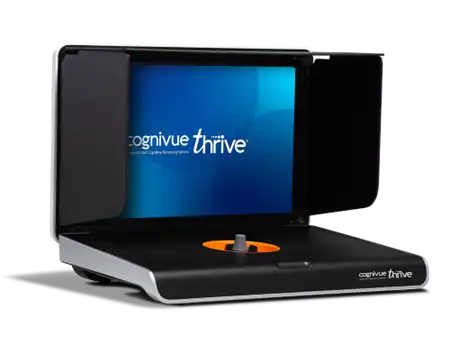 Utilizing the same FDA-cleared technology as the Cognivue Clarity, the Cognivue Thrive device is an abbreviated cognitive screening tool. This 5-minute, self-administered computerized assessment easily fits in to the workflow of a busy office or pharmacy.